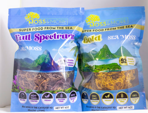 Our sea moss is harvested off the beautiful coast of St. Lucia, where it's handpicked and naturally air dried, by local farmers. Currently offering Full Spectrum - Multi-Color, Gold, and Purple Sea Moss. We guarantee all of our sea moss is 100% Wild Crafted.