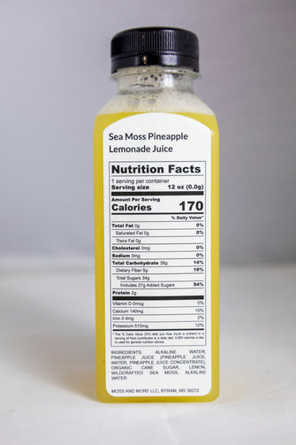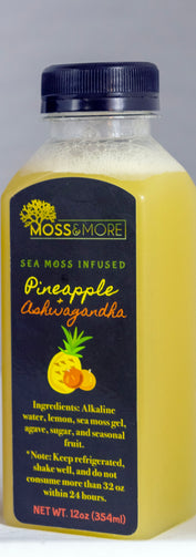 Relax with this organic blend of pineapple, fresh squeezed lemons, alkaline water, ashwagandha, and sea moss. Reap the benefits of your daily dose of sea moss and unwind with the stress reducing properties of ashwagandha.